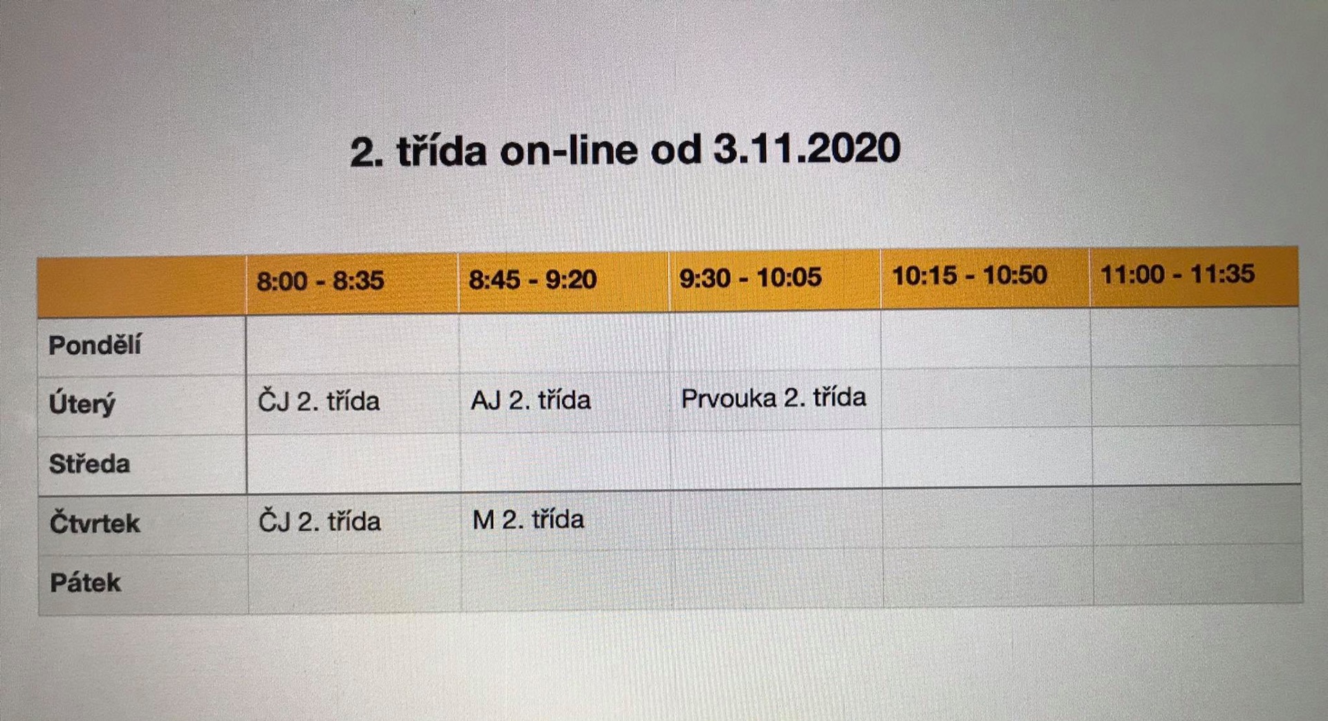 od 3. 11. 2020 začne probíhat on-line výuka pro vaše děti. Forma bude stejná jako na jaře, před první hodinou zašlu na vaše e-mailové adresy odkaz, díky kterému se připojíte na výuku. Rozvrh hodin bude pod tímto textem. Situace, ve které se všichni nacházíme mne velice mrzí, ale musíme se s tím poprat. Pevně věřím a doufám, že to nebude trvat tak dlouho jako na jaře. Pokud byste cokoli potřebovali, neváhejte se na mne obrátit. E-mail: khollitzerova@gmail.com. Co se týče kontroly pracovních sešitů, pokud to bude možné, ráda bych vás poprosila o dopravení pracovních sešitů dne 6. 11. 2020. Ve škole budu do 12:30 hod., sešity mi prosím nechte na lavičce z bočního vchodu (stejně jako na jaře). Přes víkend se na ně podívám a v pondělí vám je opět nechám na lavičce.